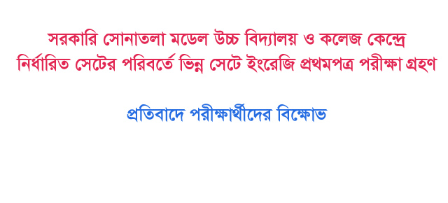 সরকারি সোনাতলা মডেল উচ্চ বিদ্যালয় ও কলেজ কেন্দ্রে নির্ধারিত সেটের পরিবর্তে ভিন্ন সেটে ইংরেজি প্রথমপত্র পরীক্ষা গ্রহণ