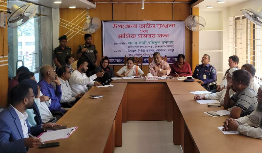 সোনাতলায় উপজেলা আইন-শৃঙ্খলা ও মাসিক সমন্বয় সভা অনুষ্ঠিত