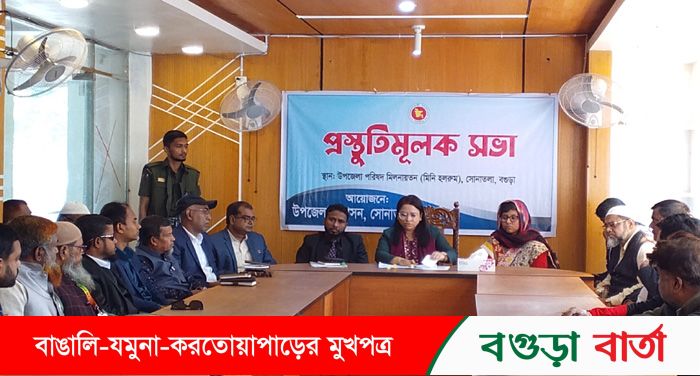 উপজেলা নির্বাহী অফিসার স্বীকৃতি প্রামানিকের সভাপতিত্বে প্রস্তুতিমূলক সভায় বক্তব্য রাখেন উপজেলা সহকারী কমিশনার (ভূমি) শাহনাজ পারভীন, কৃষি অফিসার সোহরাব হোসেন, উপজেলা বিএনপির সহ-সভাপতি আহসান হাবীব রাজা, সাধারণ সম্পাদক জিয়াউল হক লিপন, উপজেলা পরিষদের সাবেক ভাইস চেয়ারম্যান ও উপজেলা জামায়াতের নায়েবে আমীর বীরমুক্তিযোদ্ধা এনামুল হক মন্ডল, উপজেলা জামায়াতের আমীর ফজলুল করিম, পৌর বিএনপির সভাপতি আবু নাসের ওয়াহেদ নোবেল, সাধারণ সম্পাদক শরিফুল ইসলাম খান নিপু, সাংগঠনিক সম্পাদক রাজ্জাকুল ইসলাম রাজ্জাক, উপজেলা কৃষকদলের আহ্বায়ক এমদাদুল হক বাদশা বীরমুক্তিযোদ্ধা হজরত আলী, সোনাতলা পাইলট বালিকা উচ্চ বিদ্যালয়ের সিনিয়র সহকারী শিক্ষক (ইনচার্জ) আব্দুল হাই, সোনাতলা সাংস্কৃতিক সংঠনের সভাপতি উজ্জল হোসেন খোকন।