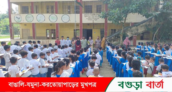 সোনাতলার রানীরপাড়া সরকারি প্রাথমিক বিদ্যালয়ে আলোর প্রদীপ সংগঠনের পুষ্টিকর খাবার ও শিক্ষা উপকরণ বিতরণ