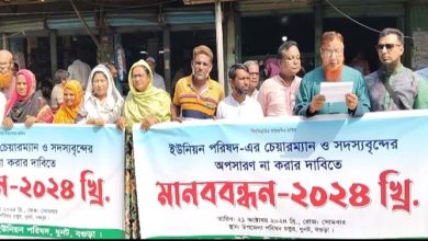 ইউপি চেয়ারম্যান ও সদস্যদের অপসারণ না করার দাবিতে ধুনটে মানববন্ধন
