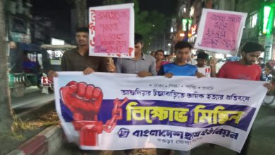আশুলিয়ার টঙ্গাবাড়িতে শ্রমিক হত্যার প্রতিবাদে ছাত্র ইউনিয়ন বগুড়া জেলার বিক্ষোভ মিছিল অনুষ্ঠিত