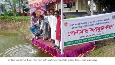 সোনাতলায় পোনামাছ অবমুক্তকরণ