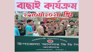 সোনাতলা উপজেলা পরিষদ নির্বাচনে আইন-শৃঙ্খলা রক্ষায় যোগ্যতাসস্পন্ন আনসার ও ভিডিপি বাছাই ২৯ এপ্রিল