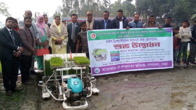 সোনাতলায় রাইচ ট্রান্সপ্লান্টারের মাধ্যমে সমলয়ে বোরোধানের চারা রোপণ উদ্বোধন